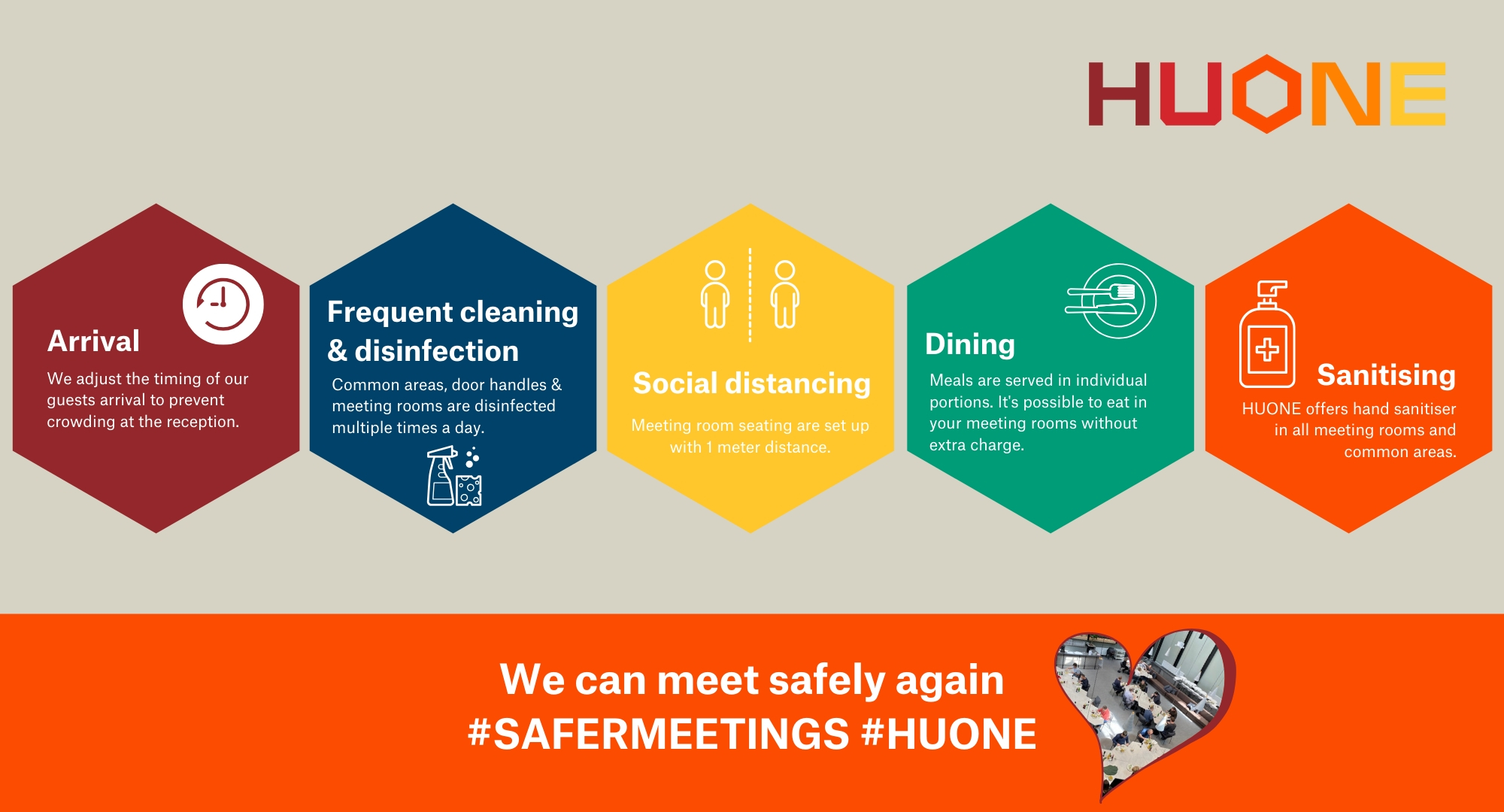 The health and safety of our guests and staff are HUONE’s first priority. HUONE is committed to maximise the safety of small meetings and to prevent the spread of the COVID-19 virus by offering a safer meeting space where we uphold a strict set of safety measures without compromises: