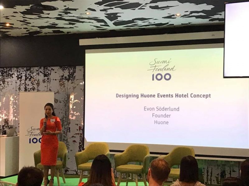 ‘Huone Singapore on ollut Suomi100 Singaporelle ja Suomen suurlähetystölle kuin koti tänä vuonna; pidimme monia tapahtumia heti Huoneen avajaisten jälkeen, mielenkiintoisia dialogisessioita, panelikeskusteluita Singaporen ja Suomen toimijoiden kesken. Marraskuussa pidimme kolme ‘Finland Fridays @ Huone‘, kolme perjantai-iltapäivää, joissa paneuduttiin koulutuksen, digitalisaation ja design-thinking and entrepreneurship saloihin. ‘Metsä’, käyttämämme tila, oli aina täynnä, noin sata alalla toimivaa henkilöä jokaisessa seminaarissa. Huone on todellakin ylittänyt odotuksiamme, saimme erittäin hyvää palvelua hektistenkin hetkien yhteydessä, kiitos siitä tietysti Evonille, Joewinille ja tiimille!”, sanoo Katariina Benedetti, Project Director SuomiFinland100 Singapore, SF100SG.
