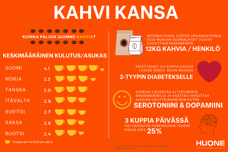 Hyvä kahvi ja hyvä kokous täydentävät toisiaan. Ilman hyvää kahvia kokouksesta puuttuu jotain, tarjoilut eivät ole täydelliset. HUONEella haluamme tarjota vieraillemme laadukkaita kahveja ja makuelämyksiä.
