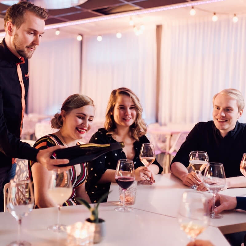 - Yksityinen huone. Valittu juhlatila järjestellään valmiiksi toiveidenne mukaan. Huone on teille varattuna yksityisesti 18.30-01.00.