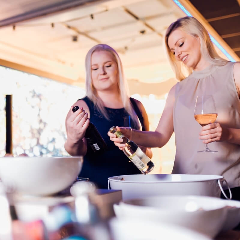 Baari on avoinna koko illan ajan palvellen janoisia juhlijoita. Pikkujoulukaudelle olemme suunnitelleet myös ennakkoon tilattavia juomamenuja, jotta saatte juotavaa suoraan juhlatilaanne jo valmiiksi. Myös drinkkiliput onnistuvat, katsomme yhdessä juuri teille sopivan juomapaketin!