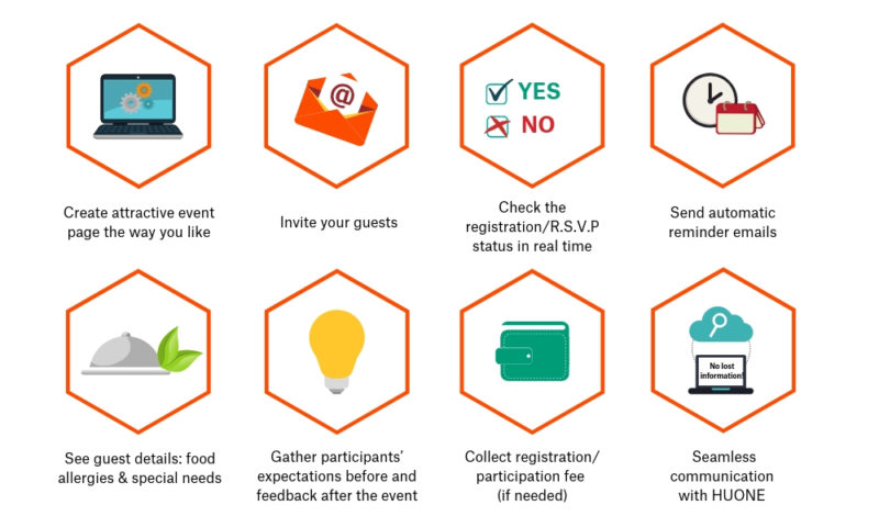 On top of our current Online Booking System (ORS), we launched the Event Management part of Eventsome®, the time-saving event management tool that HUONE offers to its customers free of charge. It’s an easy-to-use platform, where you can manage your event and guests efficiently.